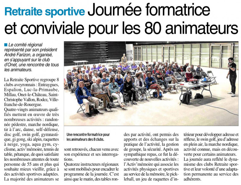 Le 5.10.2023, les Animateurs de l’Aveyron et du Tarn-et-Garonne étaient conviés à Onet-le-Château pour une matinée studieuse qui débutait par une séance plénière sur la détection et l’engagement de nouveaux animateurs se poursuivait par des ateliers thématiques par discipline sportive. Après le déjeuner, après-midi détente agrémentée par des activités physiques dont 2 nouvelles à découvrir… Et réponse aux questions.